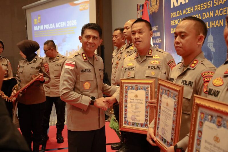Penghargaan tersebut diserahkan dalam kegiatan Rapat Pimpinan (Rapim) Polda Aceh yang berlangsung di The Pade Hotel.