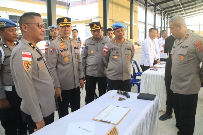 Banda Aceh — Polda Aceh menggelar pemeriksaan senjata api yang digunakan personel kepolisian sebagai bagian dari pengawasan penggunaan senjata dinas. Kegiatan tersebut berlangsung di Meuligoe Tribrata Polda Aceh pada Senin, 9 Maret 2026.